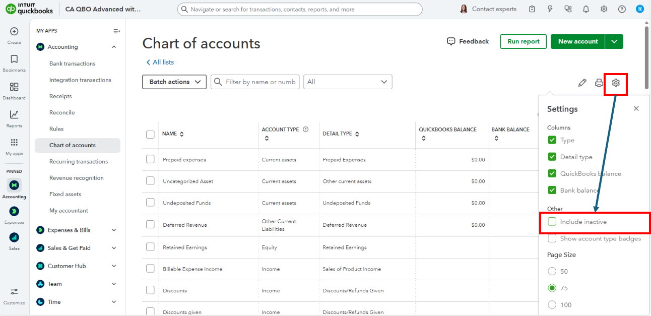 - Click the Gear icon next to the printer icon and select Include inactive.