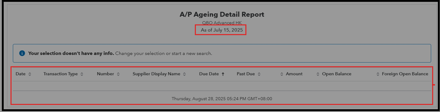 The report is designed to provide a historical snapshot, accurately reflecting your outstanding bills as of the selected report date.