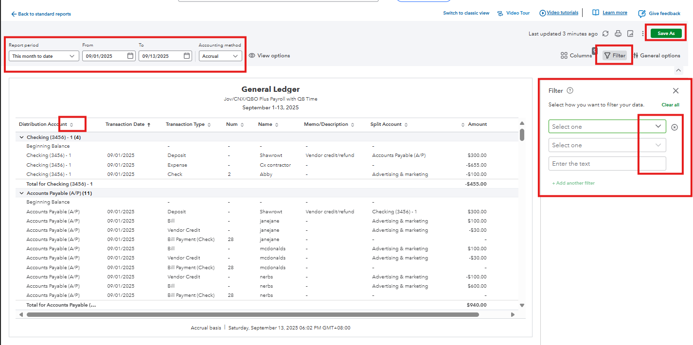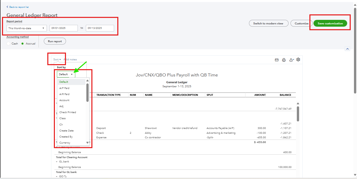 It depends on the layout you’re using, as QuickBooks Online allows customization of the General Ledger and Standard reports, Ali.