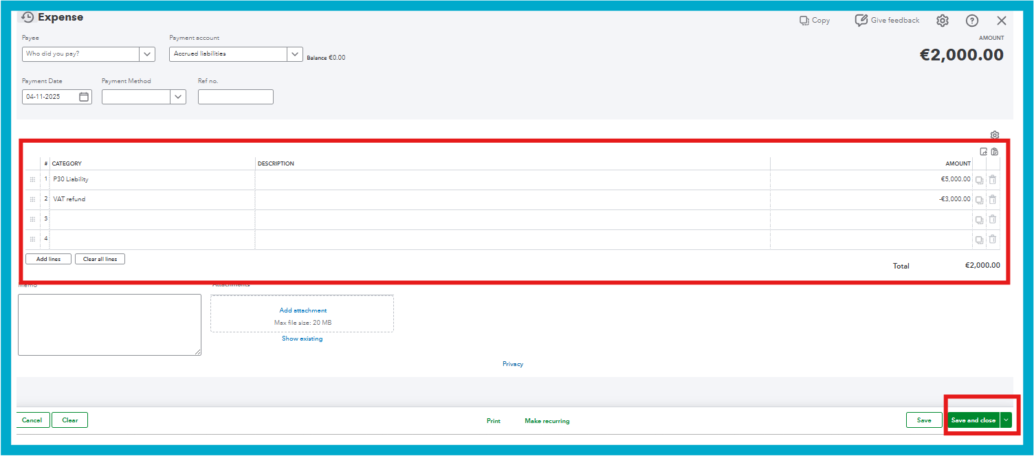 The steps outlined above provide a quick method for recording a single offset transaction. However, following the VAT workflow in QuickBooks Online is essential for ensuring accurate tracking and alignment of VAT refunds and P30 payments with your reporting and filing requirements.