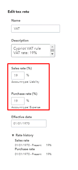 You'd see a pop-up window that will display the VAT details. It should show both sales and purchase rates.