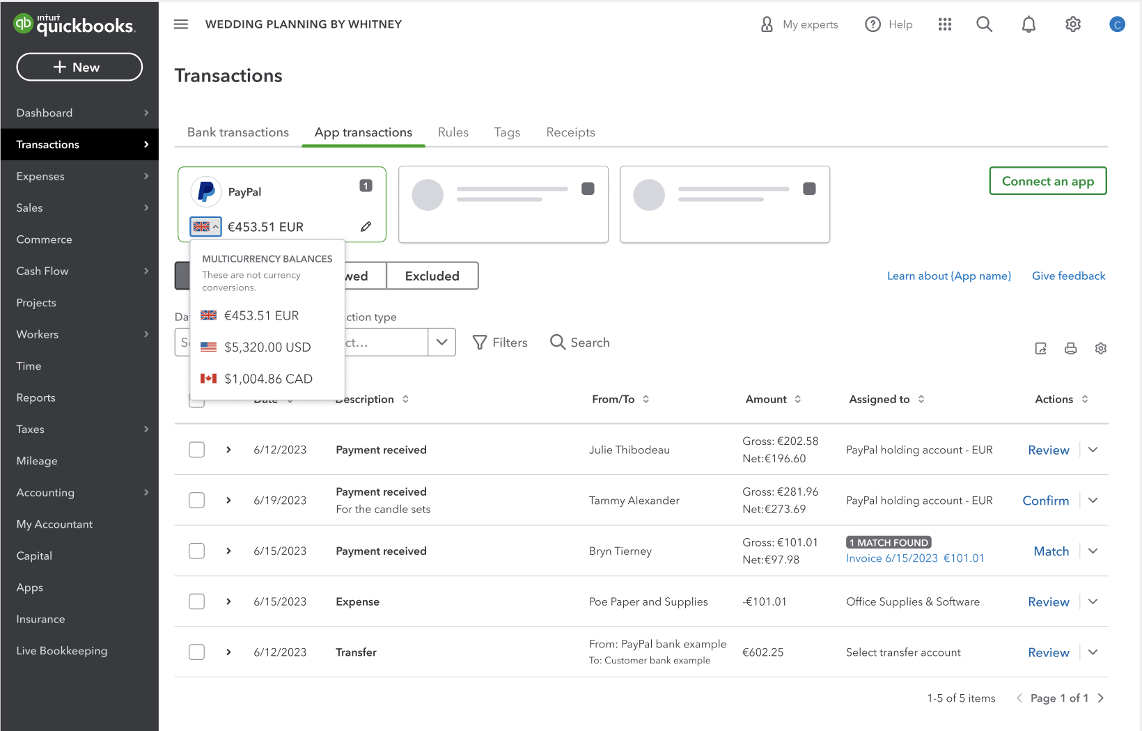 Pull in all your sales, expenses, refunds, transfers, and other transactions. QuickBooks will then categorise them into the correct currency Chart of Accounts, import the relevant VAT information, and capture all key line-item details. Plus, you can even add high-confidence transactions to your books without review using AI-powered rules.